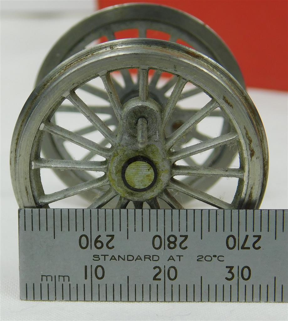3 0 scale 16 spoke 34mm (4' 10" approx) diameter driving wheels, needs a clean, no crank pin nuts, no original packaging. Ruler not included.