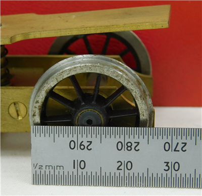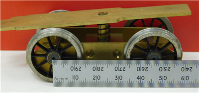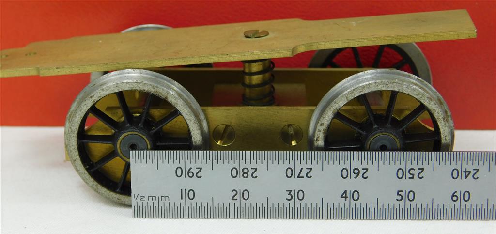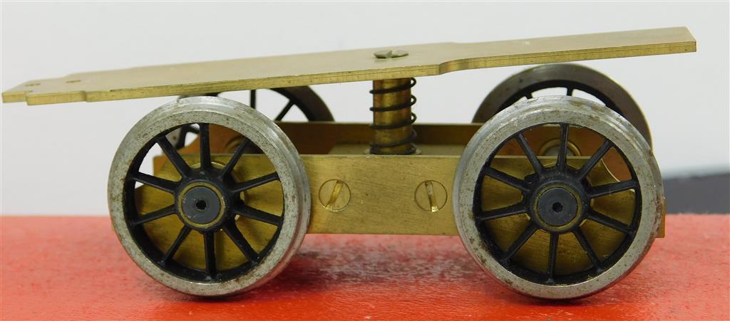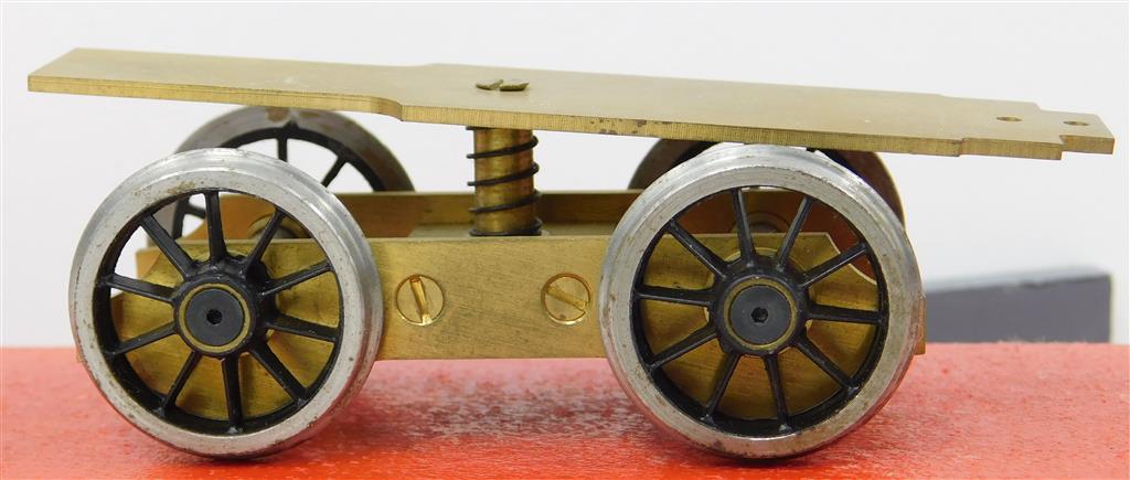 0 scale brass front pony with Slater's wheels and mainframe piece, type unknown, wheelbase 45mm, 25mm diameter pony wheels