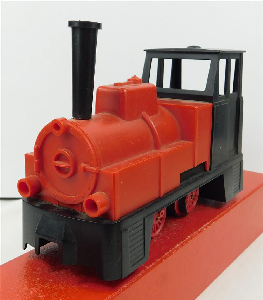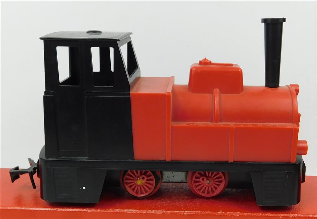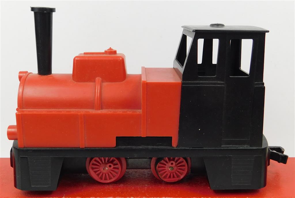 A HWN Big-Big style 0-4-0 steam loco, motor runs well, the switch and battery contacts need a good clean, note that the couplings are the mirror image of Tri-ang and will not connect to Tri-ang, also note the wheels have thick flanges and will not run through Big-Big points, no original box, made by Heinrich Wimmer of Nuremberg circa 1973
