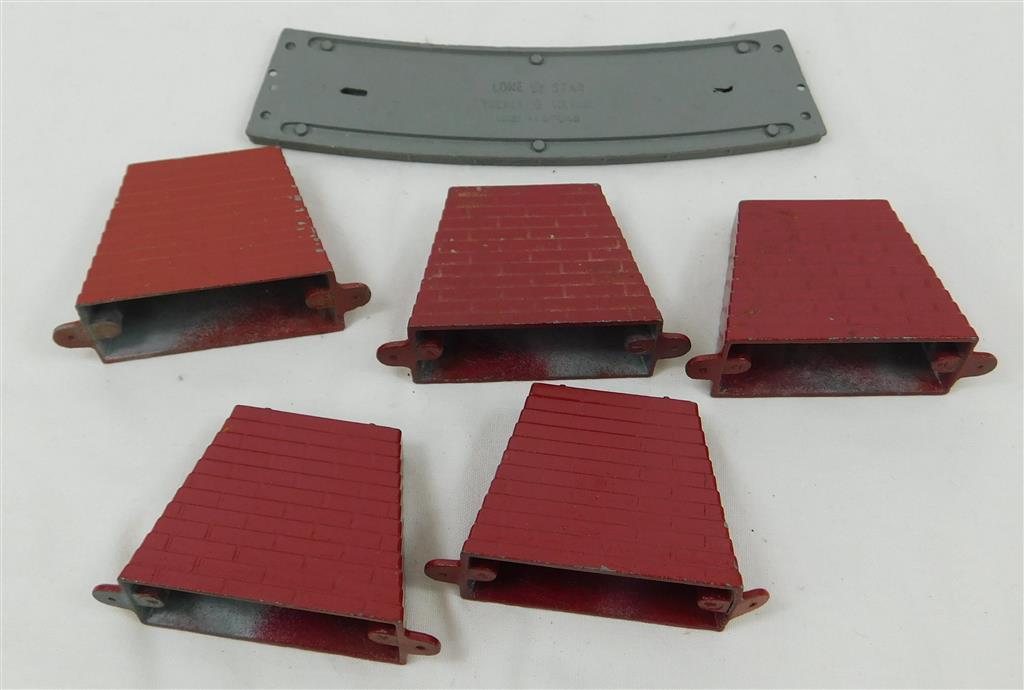 Lone Star 000 gauge: 5 playworn Lone Star 000 gauge diecast high level piers and one high level base