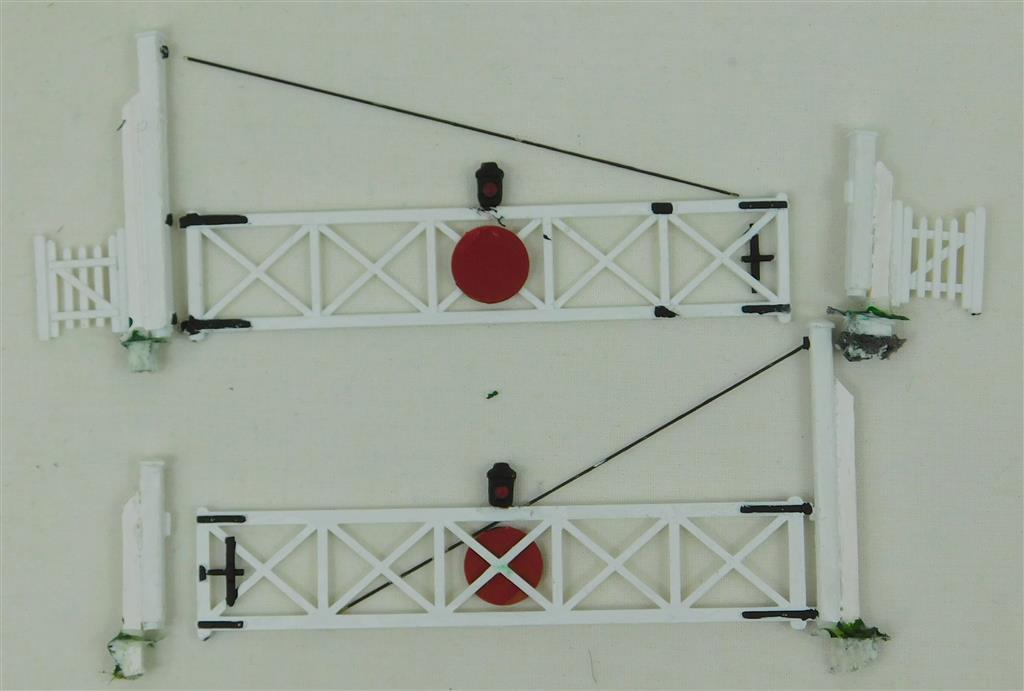 A pair of level crossing gates removed from a layout, with pedestrian gates.