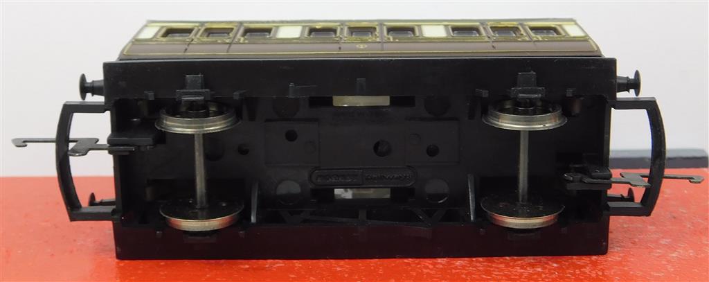 A Hornby GWR 4 wheel coach, roof needs a repaint after being cleaned of existing peeling paint otherwise in good condition, no original box