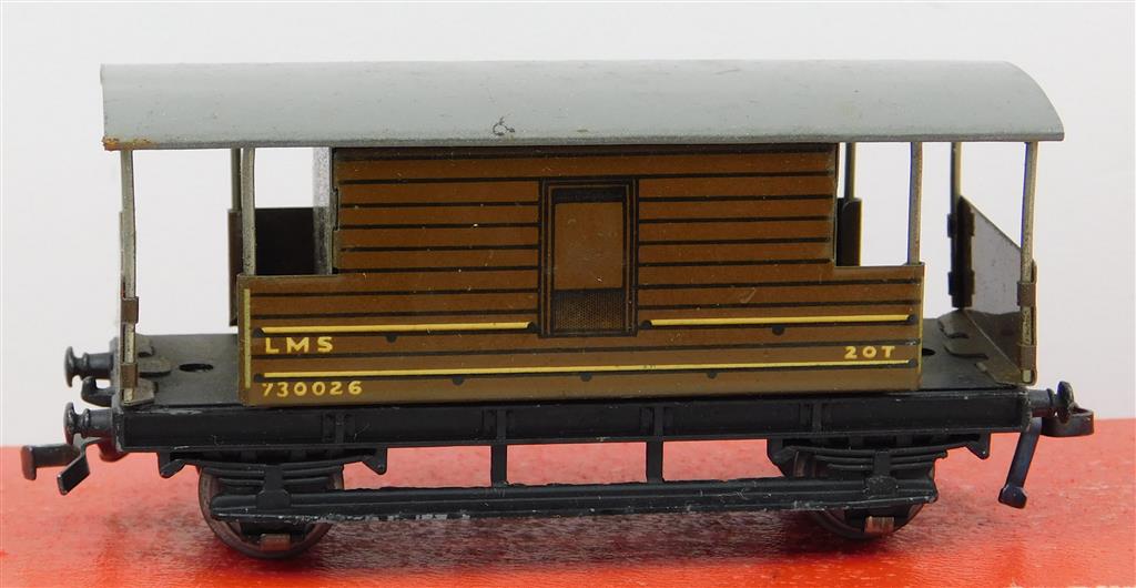 A Hornby Dublo 3 rail tinplate LMS brake van numbered 730026, in good used condition, supplied in the original box