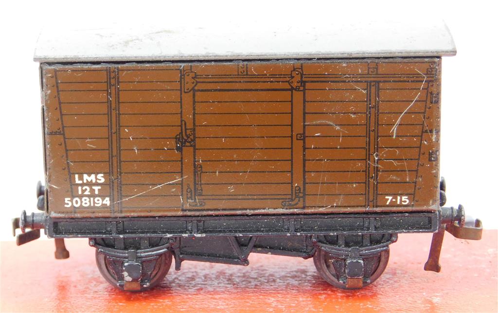 A Hornby Dublo 3 rail tinplate LMS van numbered 508194, uninsulated metal wheels fitted, in fair condition, no original box