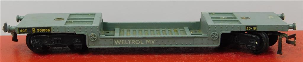 A Hornby Dublo 2 or 3 rail bogie weltrol wagon numbered B901006, plastic wheels fitted, in good used condition but needs a clean, supplied in the original box
