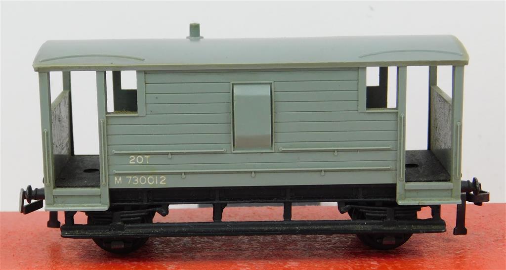 A Hornby Dublo 2 or 3 rail plastic bodied ex LMS brake van numbered M730012, plastic wheels fitted, in good condition, supplied in the original box