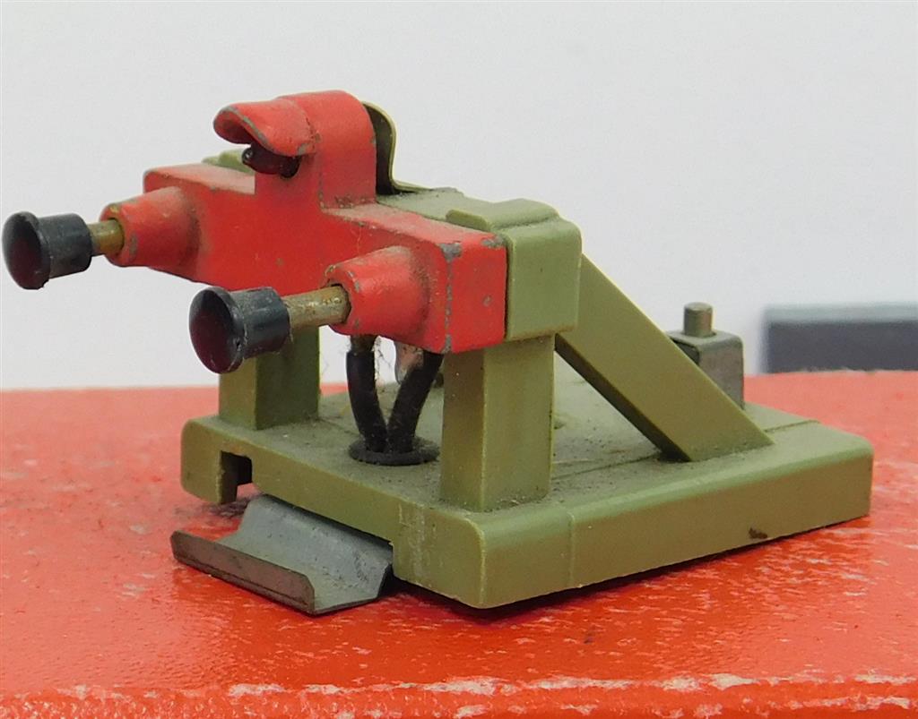 A Hornby Dublo 2 rail lit buffer stop missing one electrical terminal, light works, in good used condition, no original box