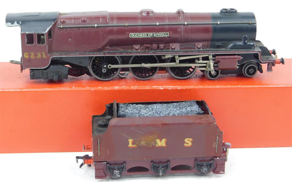 A Hornby Dublo 3 rail Duchess of Atholl, motor runs and rear wheels turn well, missing con-rod pins on the rear axle, changed drawbar, needs a thorough electrical clean and careful lubrication, sold as a project or a source of parts