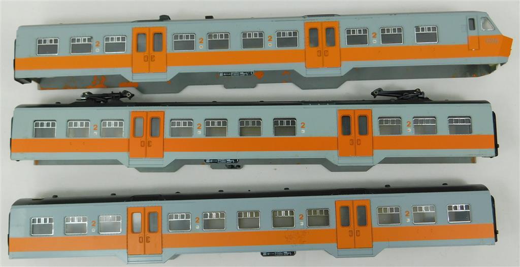 Lima Belgian 3 AM96 type EMU body shells, no chassis parts, one driving trailer, two centre cars, with pantographs