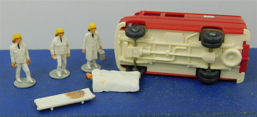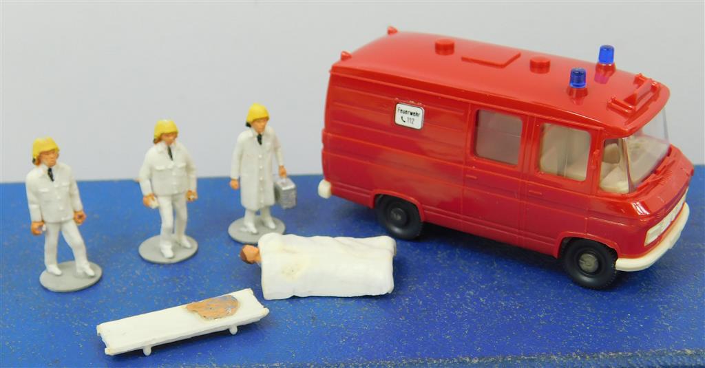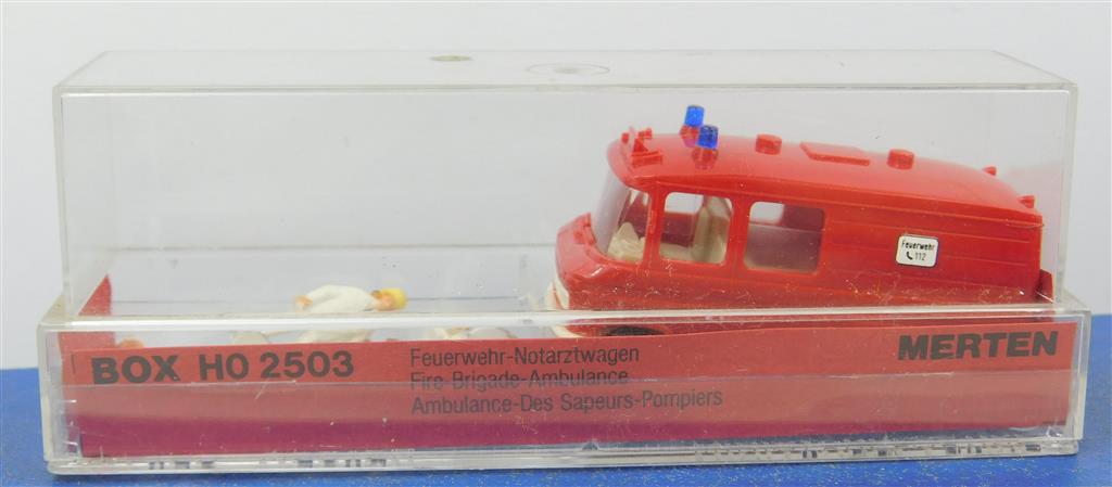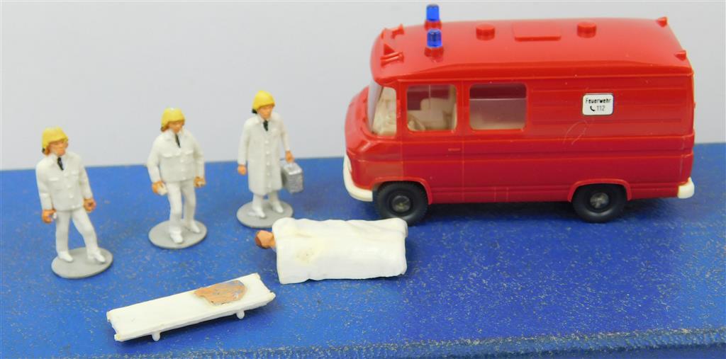 European H0 Accessories: Preiser/Wiking H0 scale 2503 Mercedes Fire Brigade Ambulance with figures
