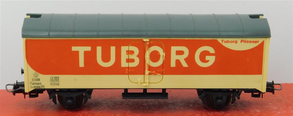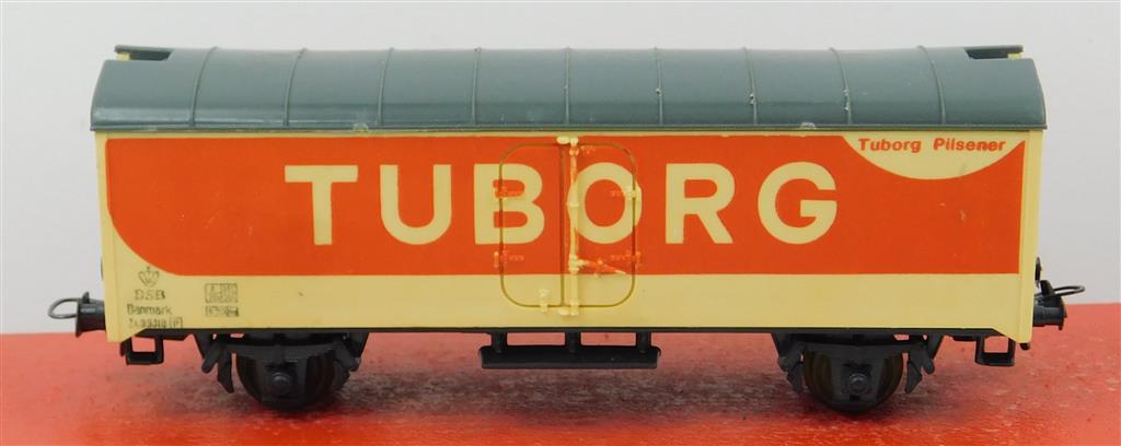 A Lima Danish Tuborg beer van with sloppy close-coupling mechanisms, in good condition, no original box. Darkened metal wheels.