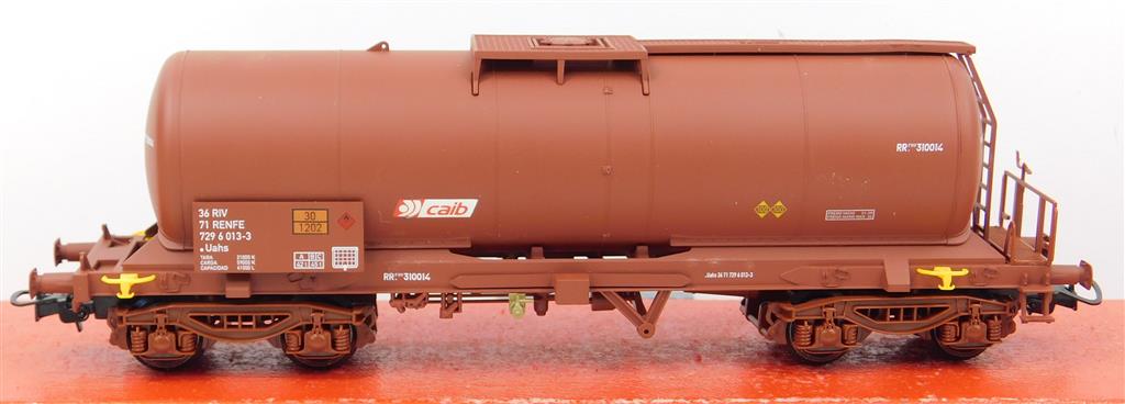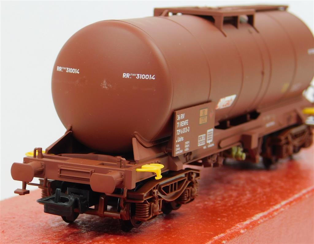 An Electrotren 5865K Spanish RENFE caib bogie tank wagon type Uahs number 36 71 729 6 013-3, in good condition, supplied in an original box. Metal wheels fitted, close coupling mechanisms with NEM pockets.