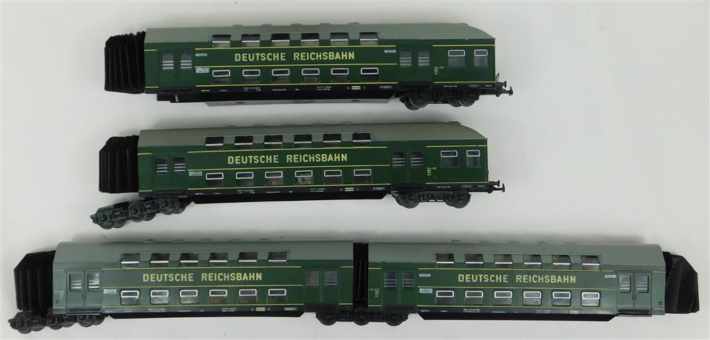 European H0 Coaches: Schicht 4 car articulated East German DR double deck coach set