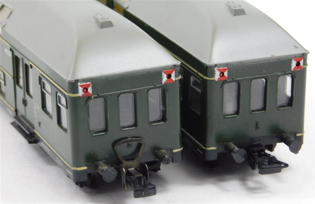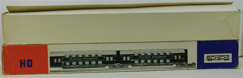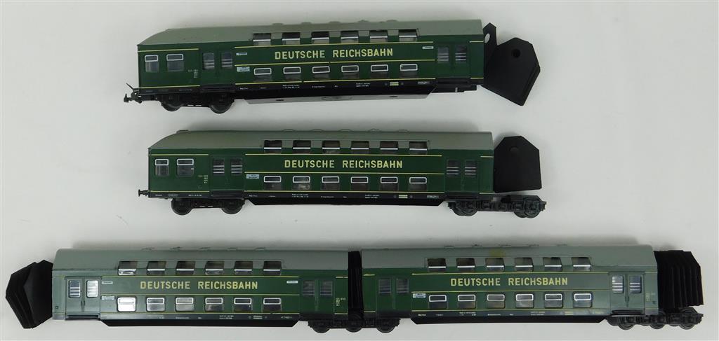 A Schicht 4 car articulated East German DR double deck coach set, in fair condition, supplied in the incomplete original boxes