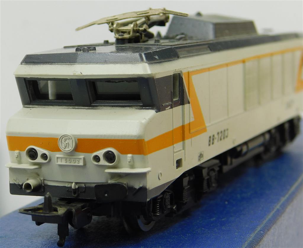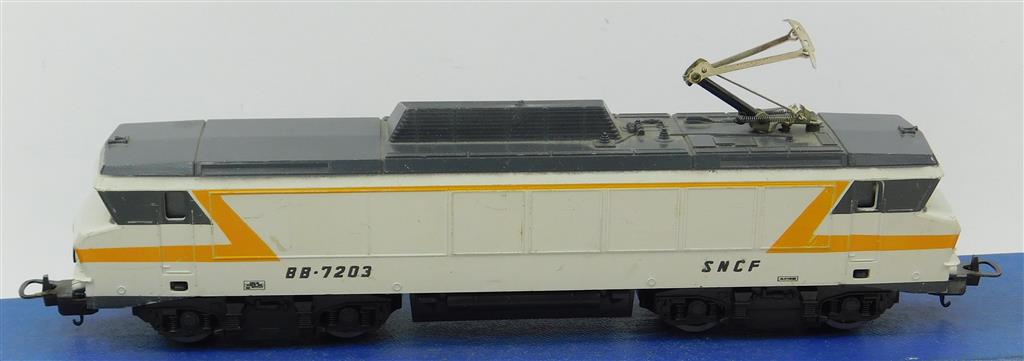 A Lima French SNCF BB 7203 electric loco, noisy runner, needs a thorough electrical clean and lubrication, directional headlights, missing some buffers, in fair condition, supplied in the original box, sold as a project