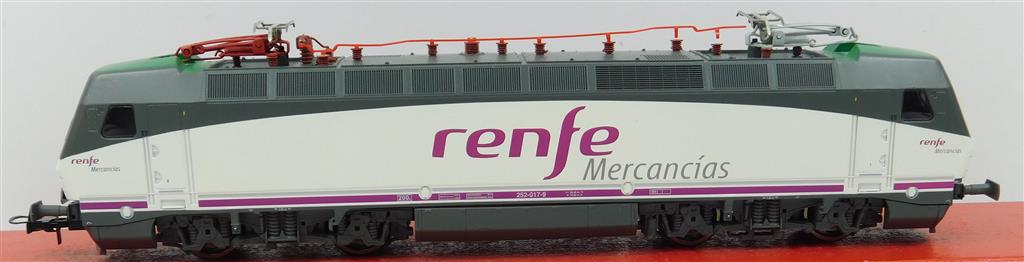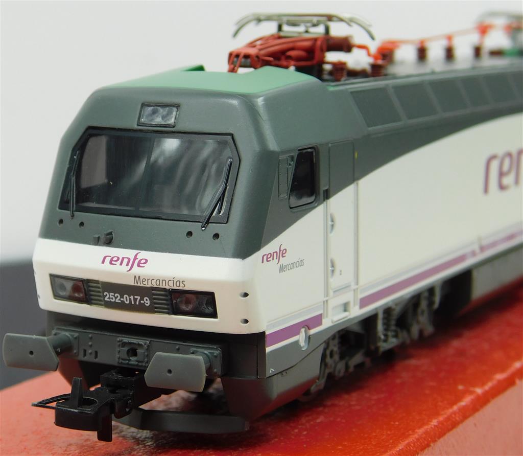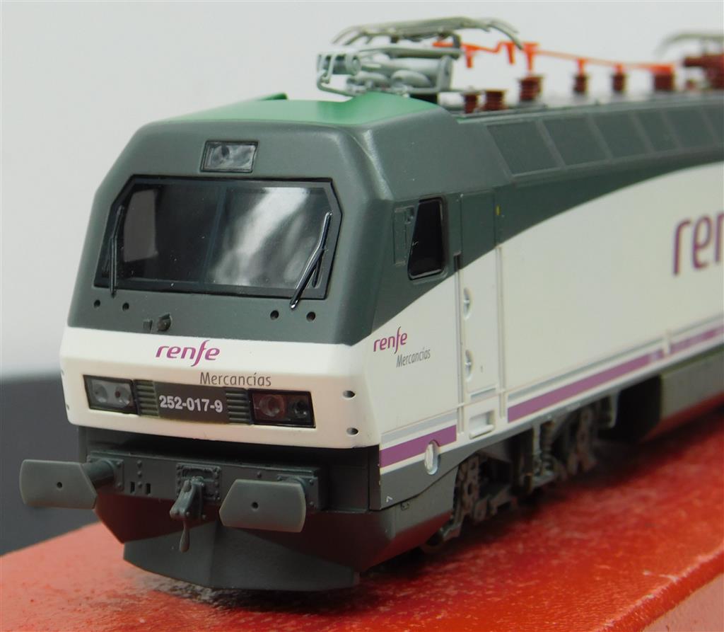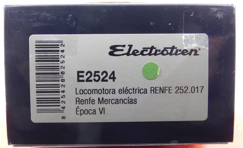 An Electrotren E2524 RENFE Mercancías 252.017 electric loco, runs well but with a grating noise, needs lubrication, details need checking and fitting, isolators on roof need tidying up otherwise in good condition, supplied in the original box, sold as a project.Previous owner was a smoker