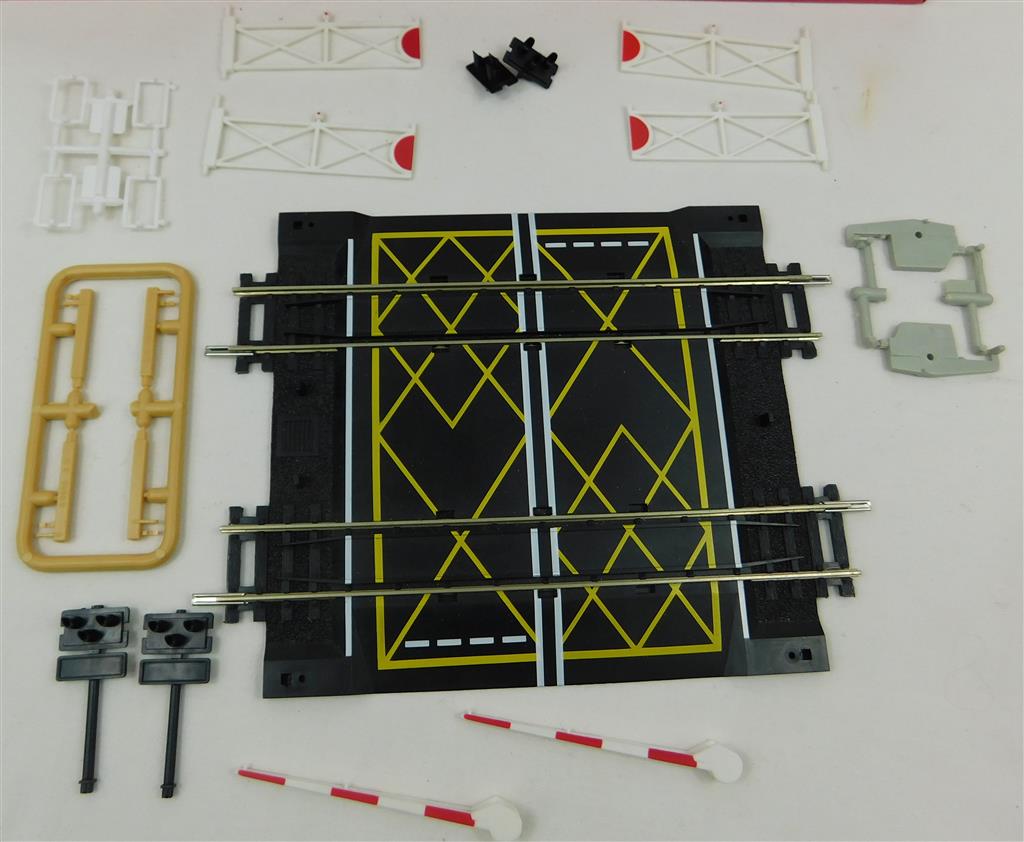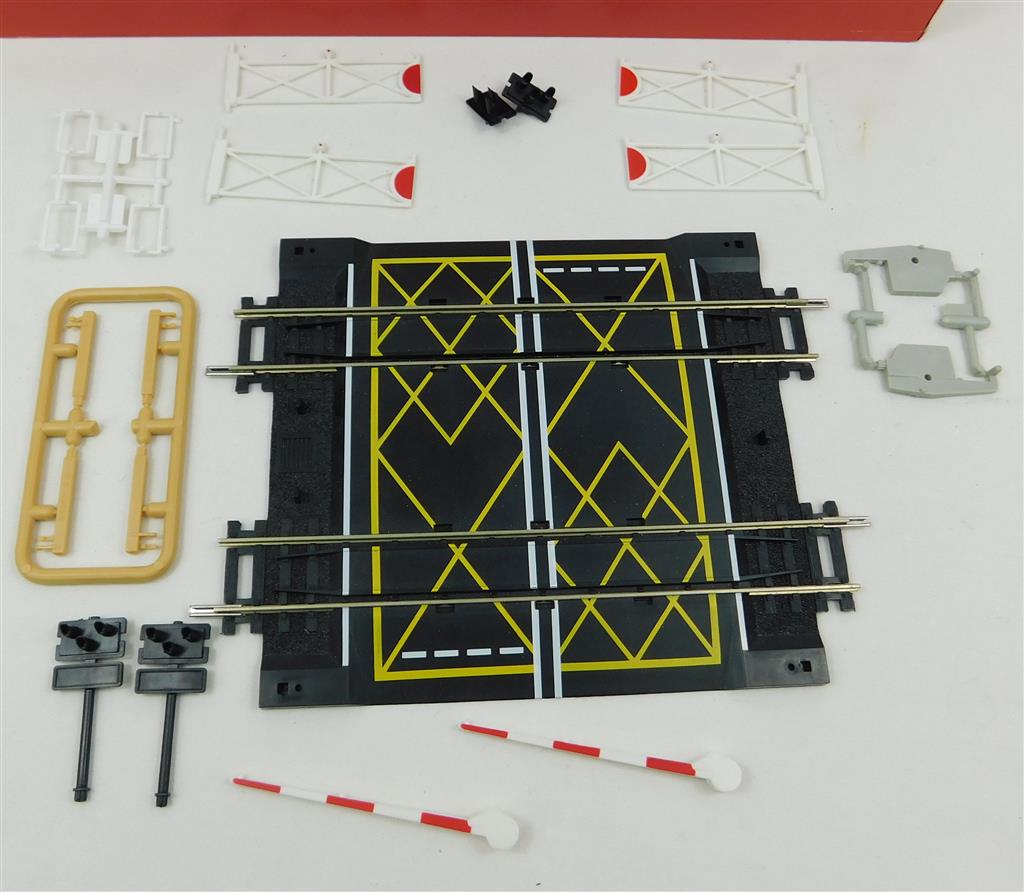 A Hornby Double Track Level Crossing with gates and half-barriers, in good condition, no original packet