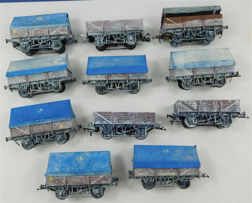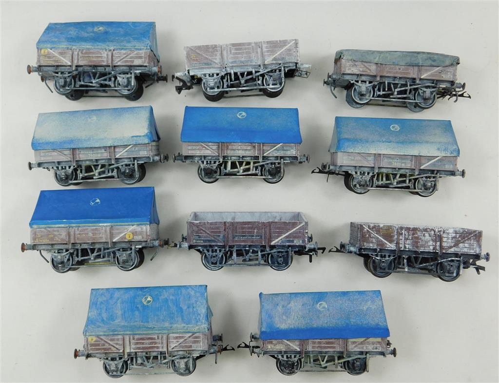 11 assorted Bachmann China Clay wagons with various couplings and EM gauge wheels, various modifications, no original boxes. You can change the wheels for 00 gauge wheels if needed.