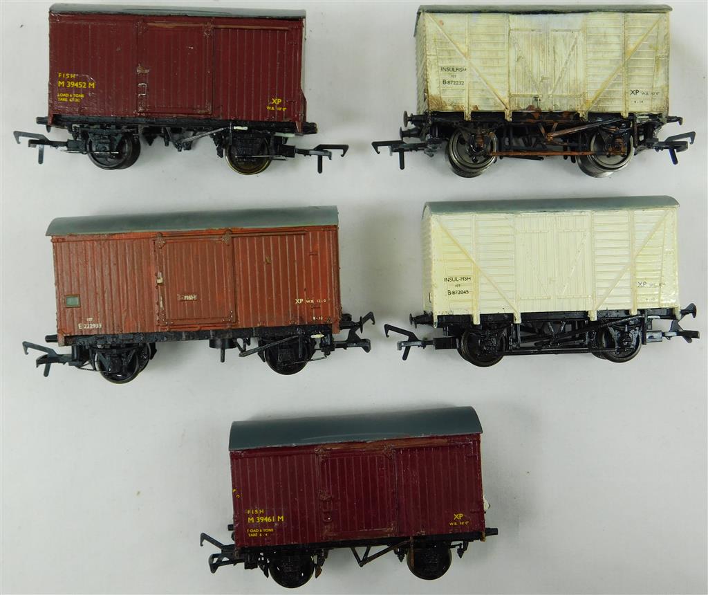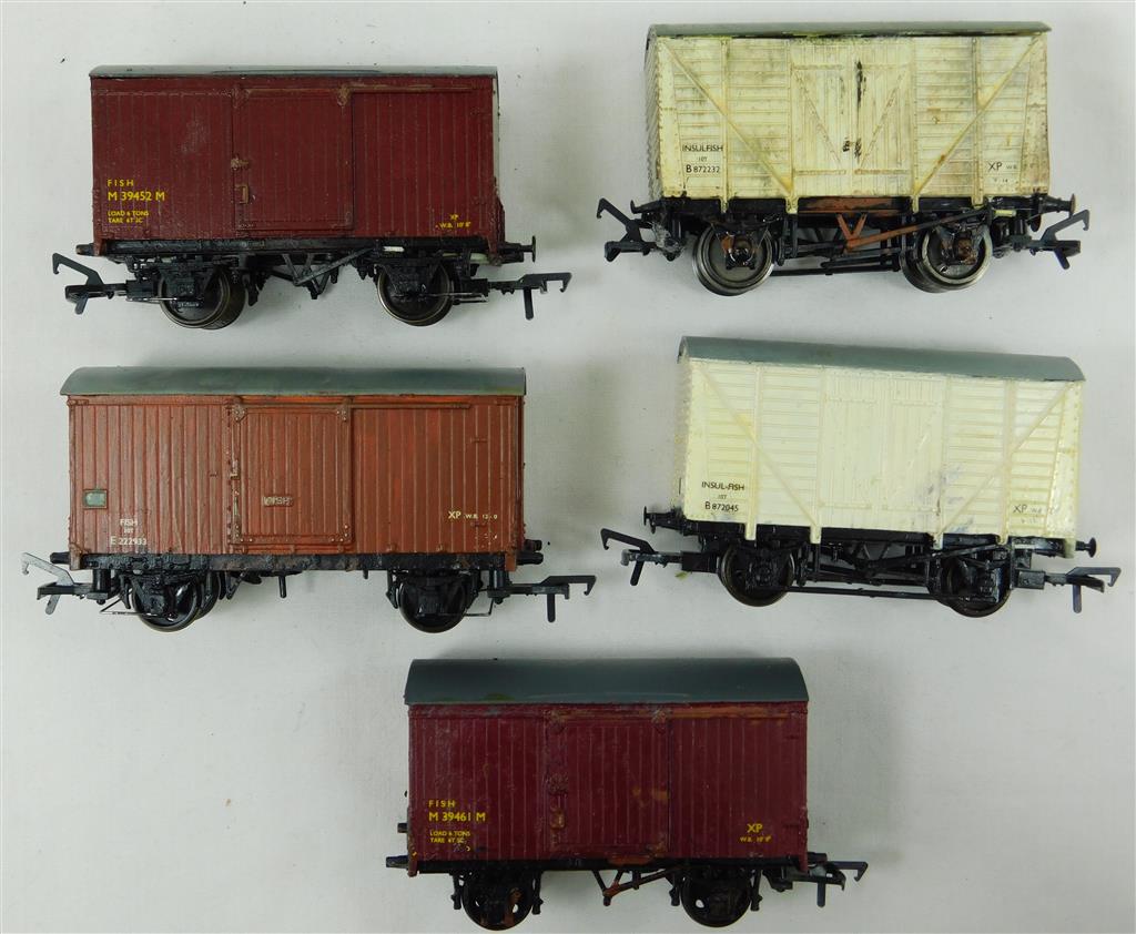 00 Wagons: 5 different kitbuilt BR fish vans, some missing buffers