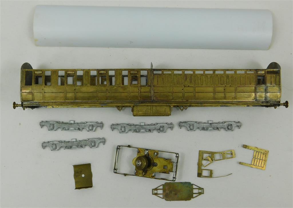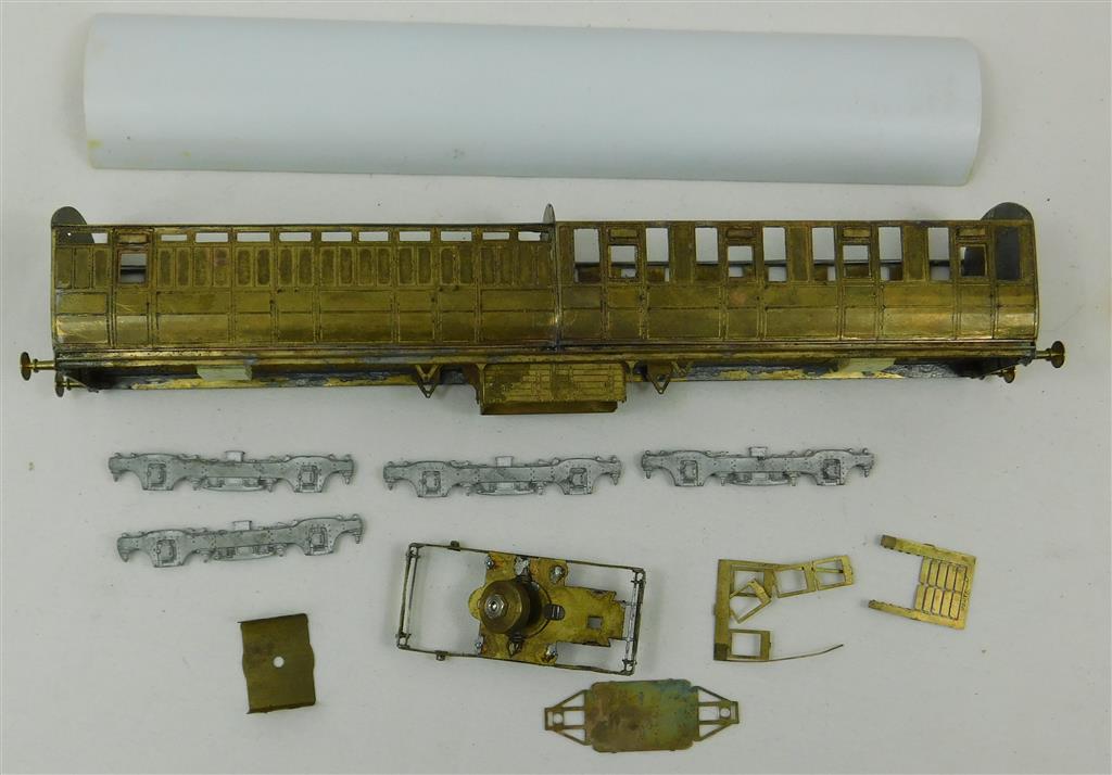 A Part assembled brass LNER suburban brake coach, missing one bogie frame and other parts, no interior fittings, no original box