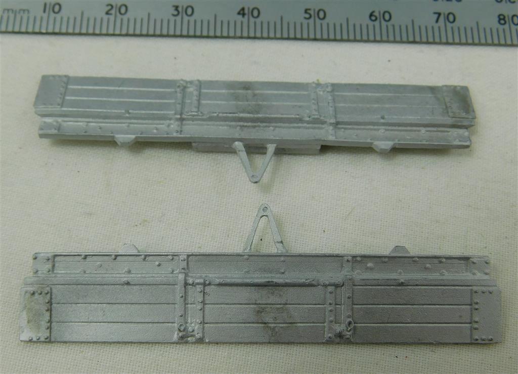 A white metal unassembled 3 plank wagon kit, make and type unknown