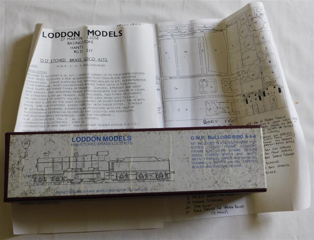 An unstarted Loddon Models GWR Bulldog/Bird 4-4-0 etched brass kit, appears to be complete