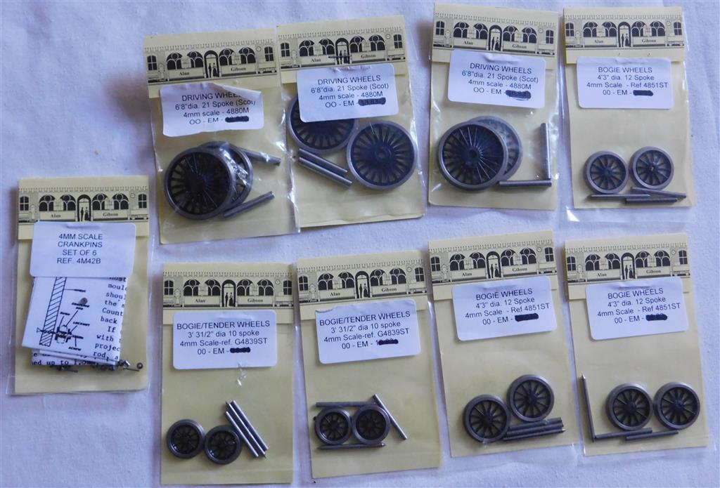 Alan Gibson complete wheelset for a Jubilee/Rebuilt Patriot/Rebuilt Royal Scot 4-6-0, 9 unopened packets, with crankpins