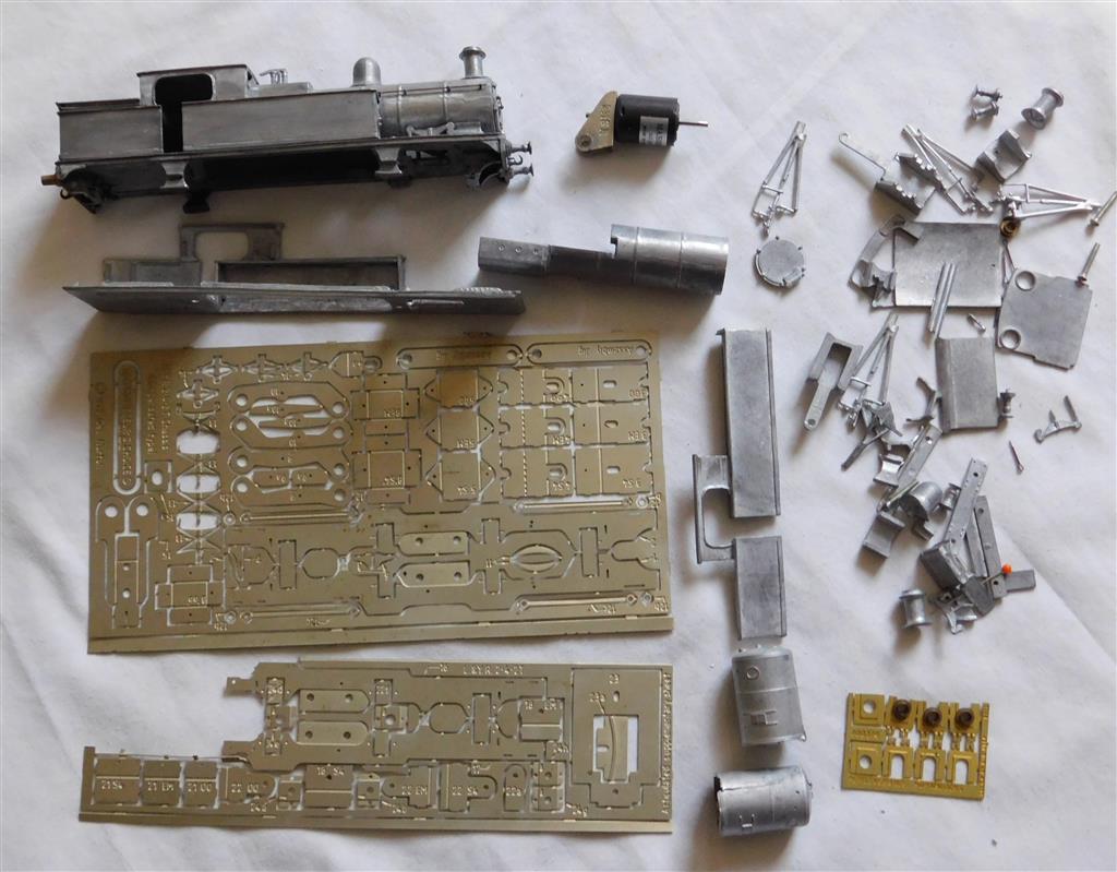 A Cotswold L&YR 2-4-2T bodyshell with some extra parts and a Mashima motor, motor runs, no wheels, one complete etch, one incomplete, heavy white metal castings, with instructions, supplied in the original box