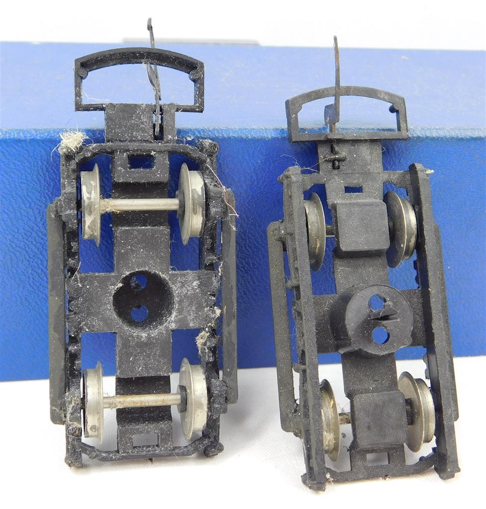 A Pair Lima Mk1 coach bogies with added footsteps, metal wheels, need a clean, no original packaging