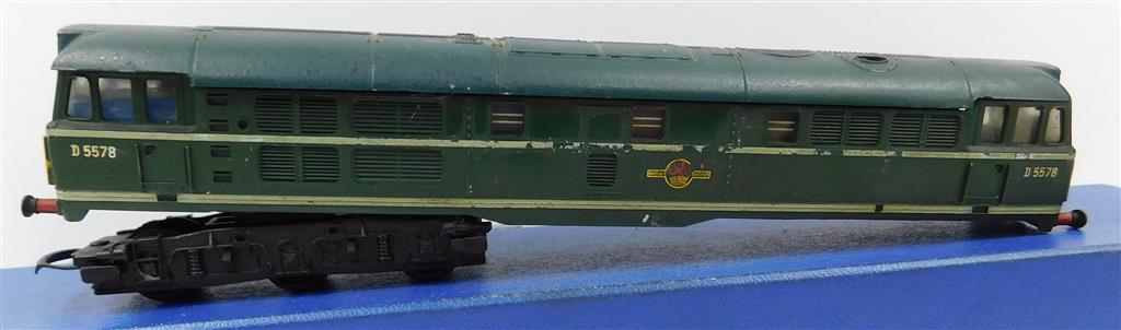 A Tri-ang Hornby class 31 bodyshell with non-powered bogie, adapted, in poor condition, needs a clean, no original box