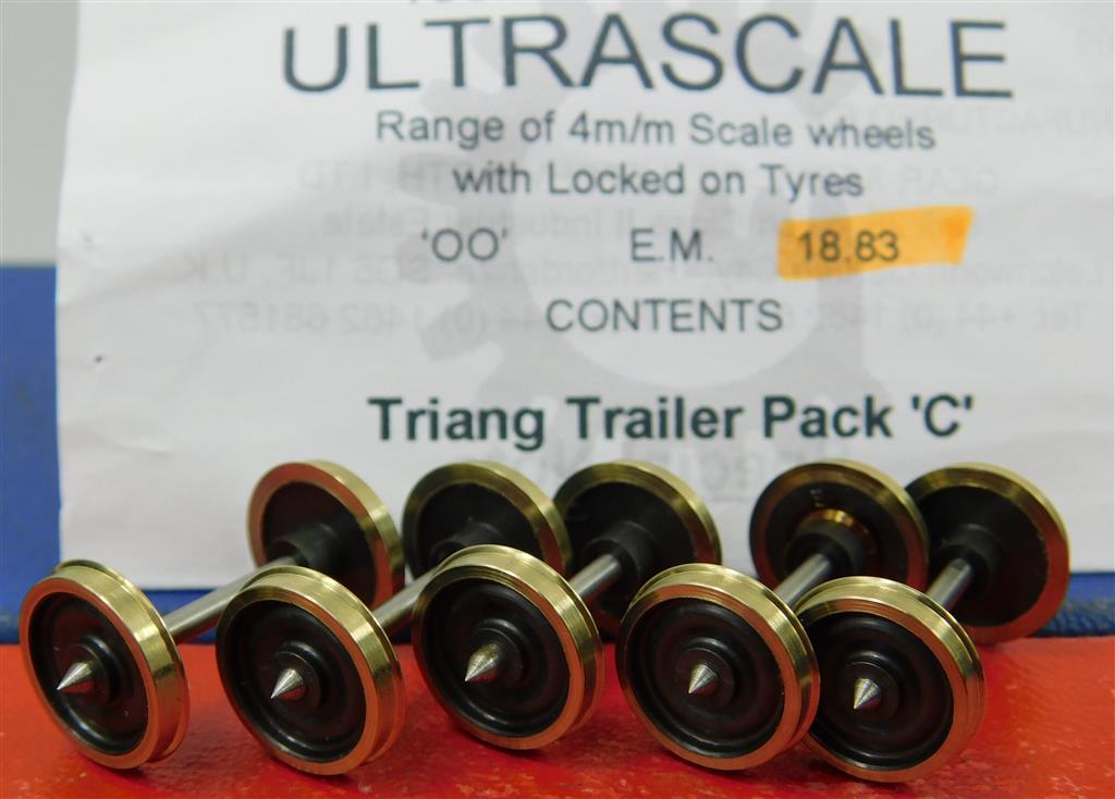 5 Ultrascale P4 gauge (18.83mm) 12mm diameter disc wagon wheels, one set is undergauge so these could be regauged with a press, no original box