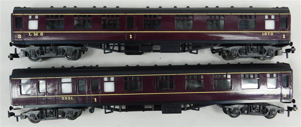 Trix/Liliput 3.8mm: 2 Liliput ex Trix plastic bodied "LMS" Mark 1 coaches