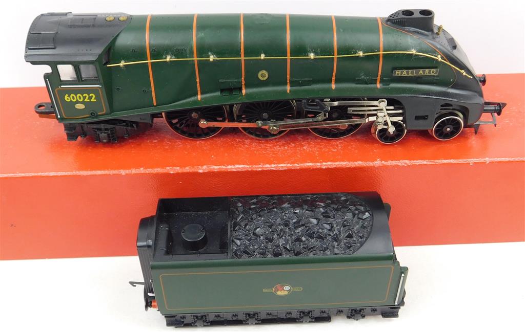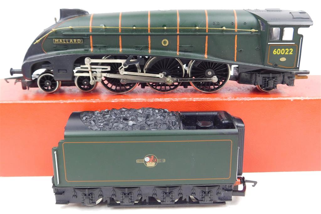 A Hornby tender drive Mallard, poor runner, needs a thorough electrical clean and lubrication, needs a clean, handrails need fixing, no original box