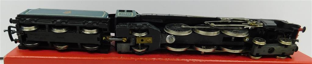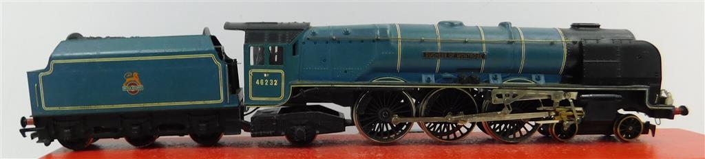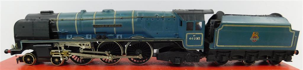 A Hornby repainted tender drive Duchess of Montrose, motor runs ok, loco chassis locks, needs a thorough electrical clean and lubrication, in fair condition, no original box