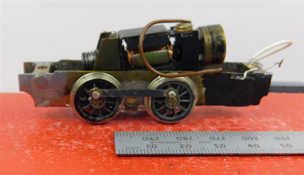 A kitbuilt short wheelbase 0-4-0 chassis, slightly noisy runner, in fair cosmetic condition, no original box