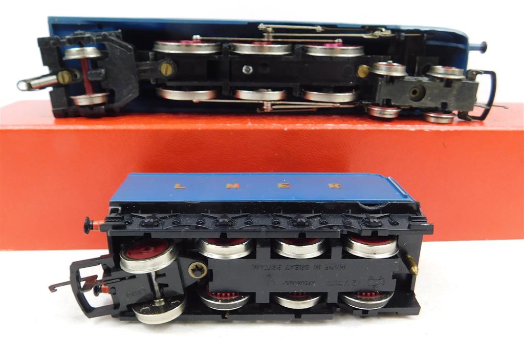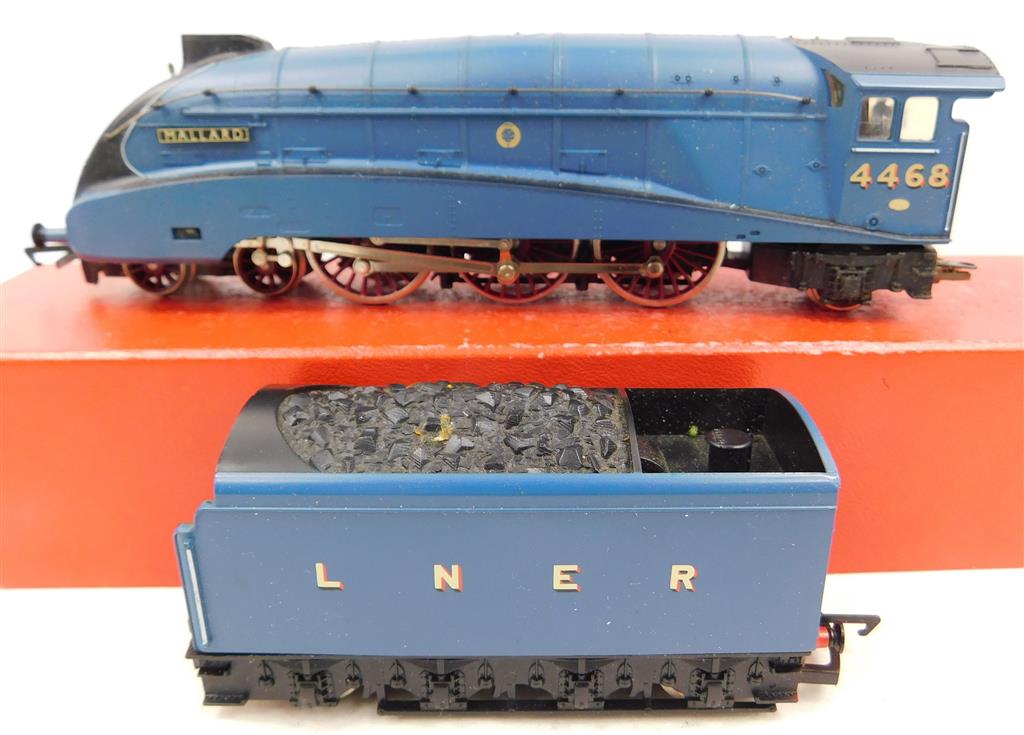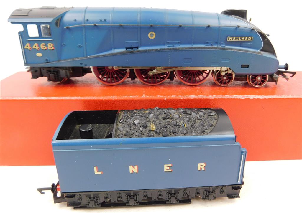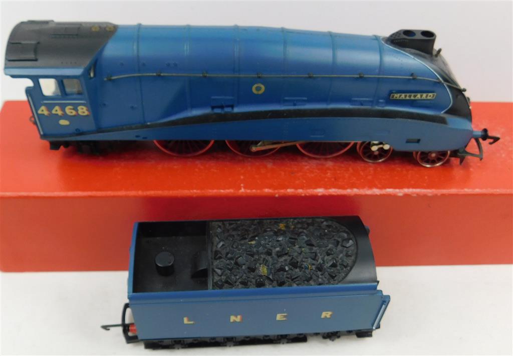 A Hornby R304 A4 loco "Mallard", tender drive mechanism works well but the wheels in the loco have been removed and insert the wrong way round, so the loco doesn't work on the track, needs the loco dismantling and rebuilding, also needs the failed DCC chip removing and rewiring, in good cosmetic condition, supplied in the original box