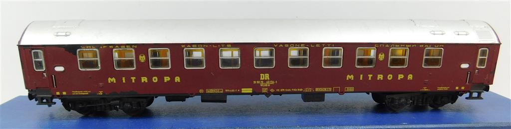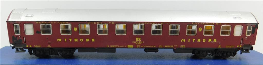 European H0 Coaches: Prefo East German Mitropa sleeping car, considerable paint loss - spares/repair