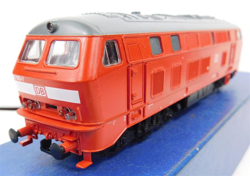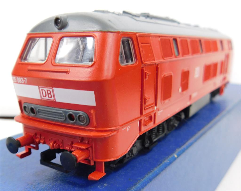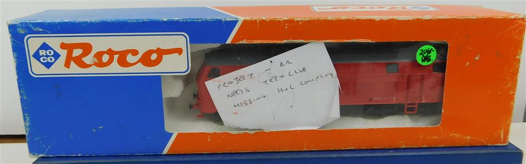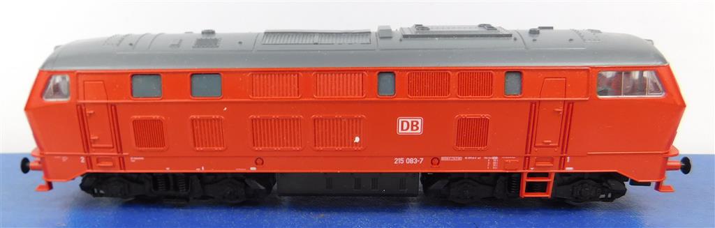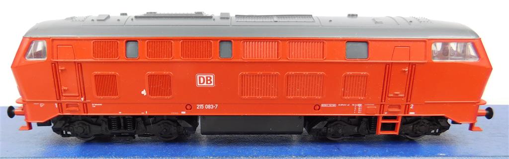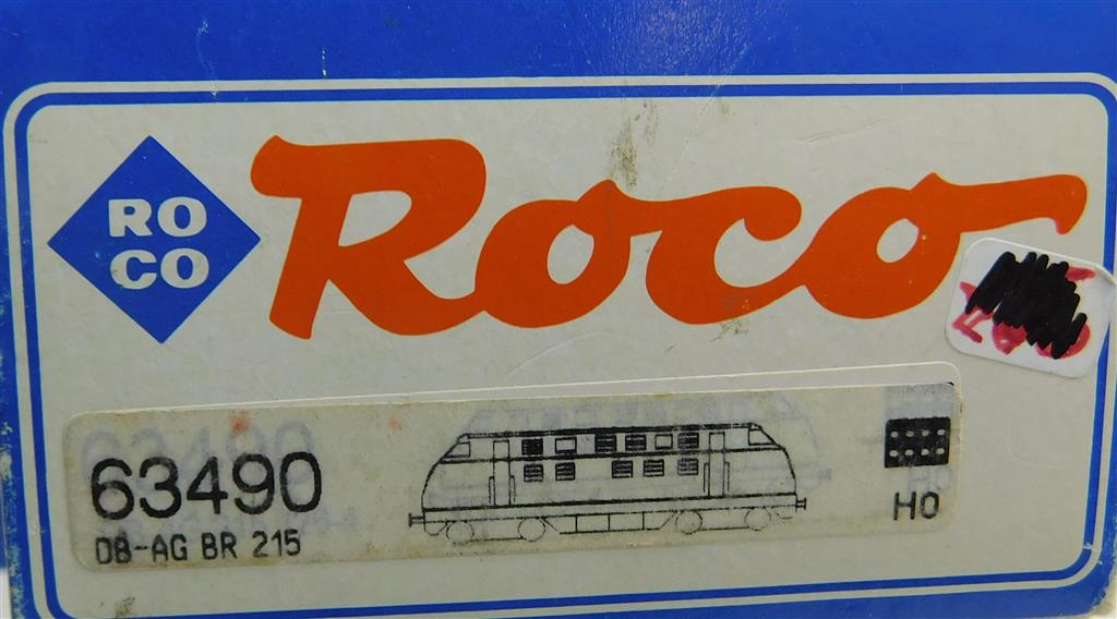 A Roco 63490 German DBAG 215 083-7, reluctant runner needs a thorough electrical clean and lubrication, missing hook and loop couplings but supplied with Fleischmann and original Roco "close" couplings, in good condition, supplied in the original box