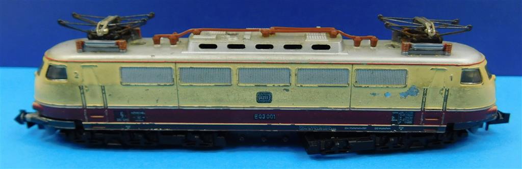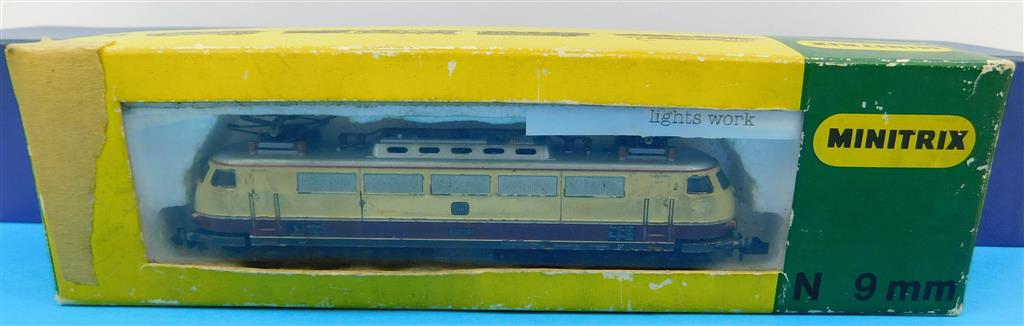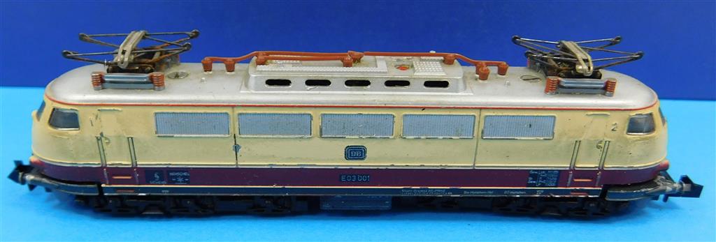 Minitrix N gauge 2930 German DB class 103, motor runs, no drive: cause needs investigating and fixing, in fair condition, supplied in the original box