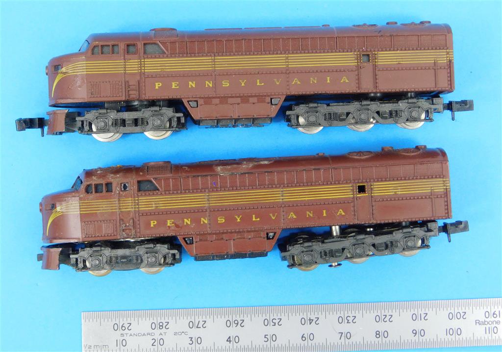 American N: Atlas by Rivarossi N gauge Pennsylvania sharknose diesel loco pair, noisy runner, a project please read