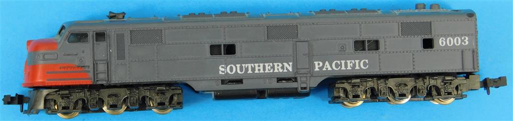 An Atlas N gauge Southern Pacific E6 diesel loco 6003, slow runner so needs a thorough electrical clean and lubrication, working headlight, in good used condition, no original box, sold as a project or a source of parts