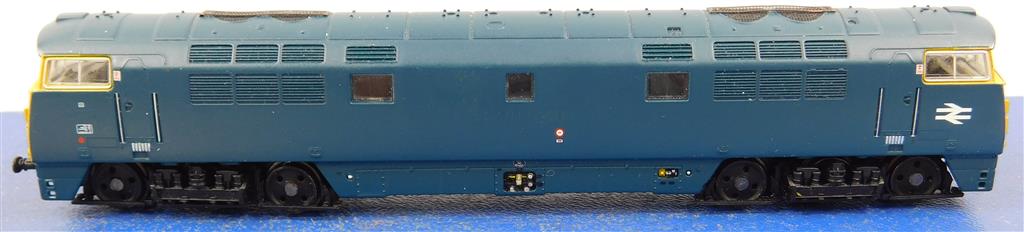A Dapol N gauge unnamed blue Western, DCC fitted (Digitrax, #9), good runner on DC and DCC, missing couplings and two buffers, supplied in the original box missing sleeve, needs buffers, couplings and name and numberplates, with DCC blanking plate