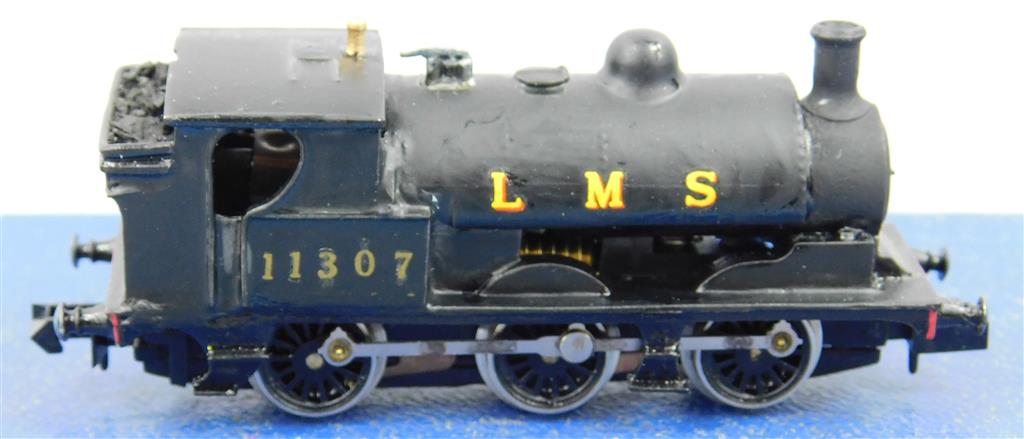 A nicely painted LMS ex L&YR Saddle Tank kit built body on Graham Farish N gauge chassis, good runner, no original box