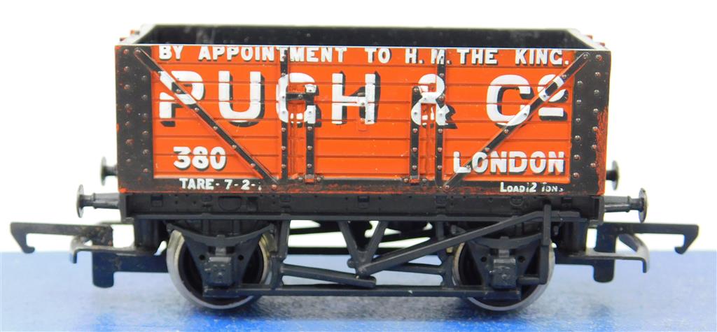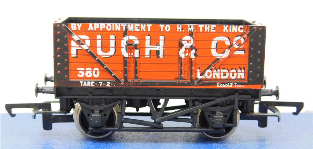 00 Wagons: Hornby R010 Pugh & Co 7 plank wagon number 380 with black bottom plank