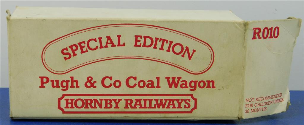 A Hornby R010 Pugh & Co 7 plank wagon number 380 with black bottom plank, in good used condition, supplied in the original box