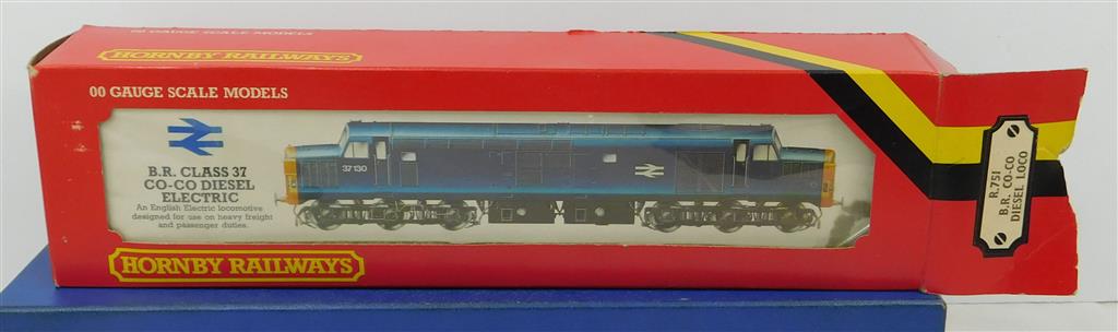 A Hornby ringfield motor drive R751 BR class 37 number 37 130, blue livery, good runner, in good condition, supplied in the original box missing one end flap