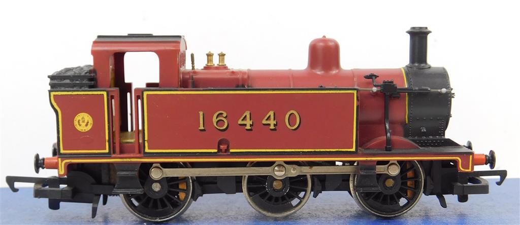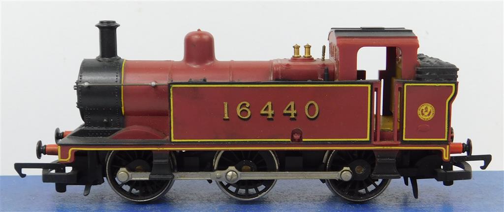 A Hornby R052 LMS Jinty 0-6-0T steam loco number 16440, good runner, in good condition but needs a clean, supplied in the tatty original box
