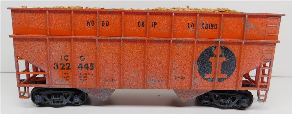 American 0 gauge: American 0 scale Wood Chip Loading hopper car with Kadee couplings ICG 322445
