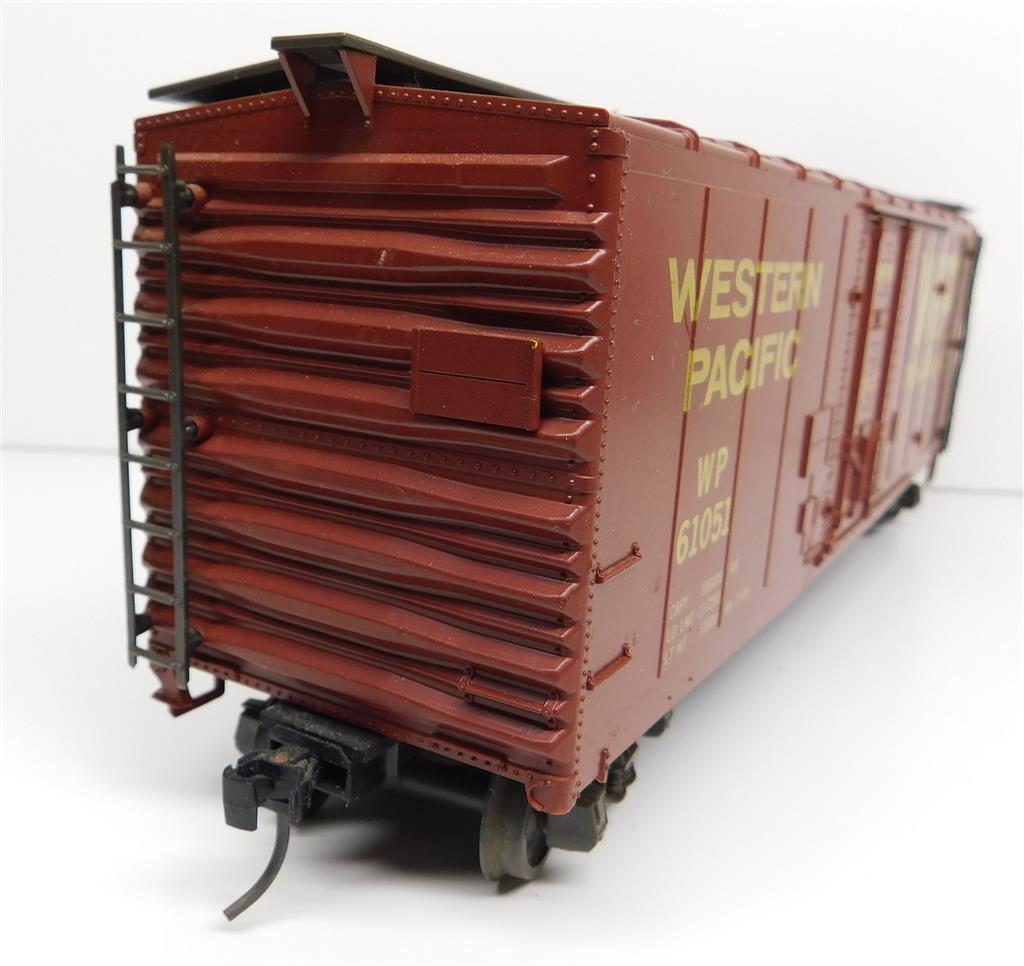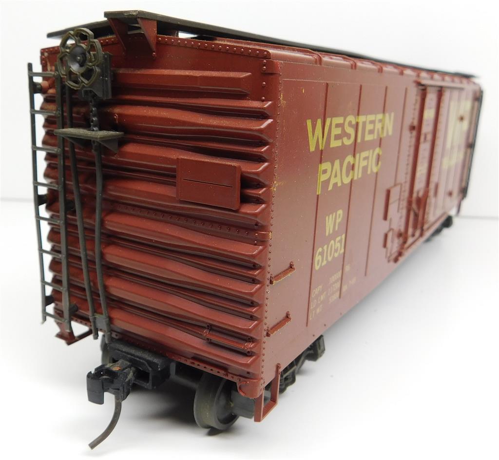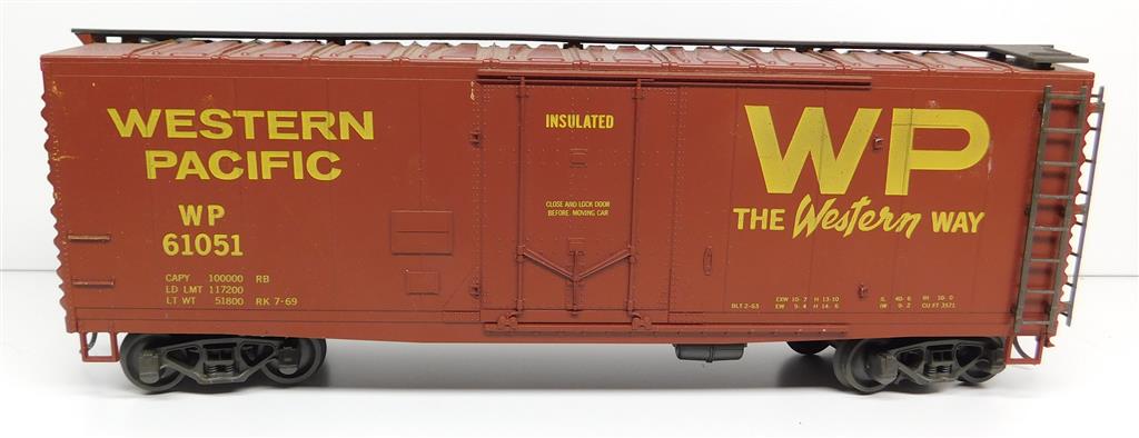 An Atlas (made in Austria) American 0 scale Western Pacific box car with Kadee couplings missing small springs to keep the couplings closed number WP 61051, fine scale wheels, in good condition, no original packaging