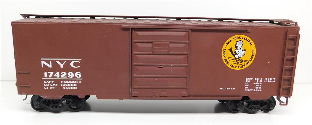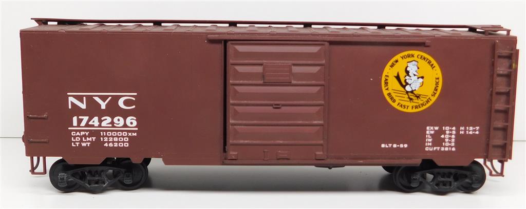American 0 gauge: American 0 scale New York Central box car with Kadee couplings missing one spring NYC 184296, plastic bodied